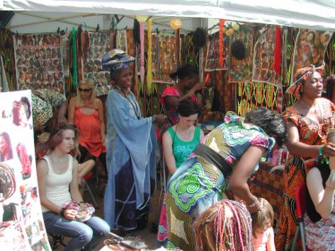 ... afrikanische Frisuren und Haarverlängerungen am eigenen Kopf ausprobieren ...